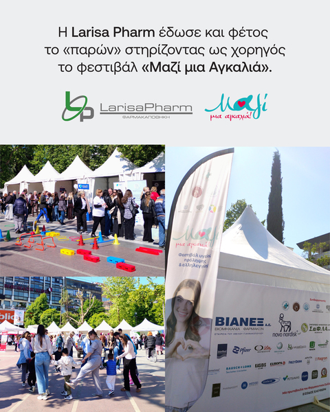 Η Larisa Pharm έδωσε και φέτος το «παρών» ως χορηγός στο φεστιβάλ "Μαζί μια Αγκαλιά'', μια σημαντική πρωτοβουλία του Φαρμακευτικού Συλλόγου Λάρισας.